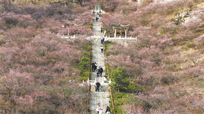 受近日气温升高和降水影响,灵丘县龙泉寺景区的山桃花开始竞相绽放,粉艳花海与古寺红墙相映成趣,吸引不少游客前来踏春打卡。据景区研判,今年山桃花较往年提早约15天绽放,目前正值初绽至盛花期的观赏佳期,花期将持续至4月中下旬,清明假期前往仍能欣赏到漫山桃花的烂漫盛景,是踏青赏花的绝佳选择。