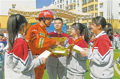 连日来,市规划和自然资源局工作人员深入各县区,开展形式多样的森林防火“六进”宣传活动,将防火知识送到居民身边。活动累计发放《森林草原防灭火条例》6000余册、森林草原防火“十不准”宣传单5000余张。图为工作人员走进山西大同大学附属小学御东校区,向学生普及森林防火知识。