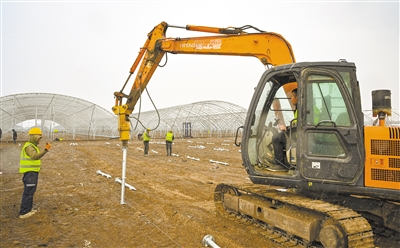 3月31日,云州区杜庄乡升烨农业设施蔬菜种植基地正加速建设,工人抢抓工期搭建钢架冷棚。