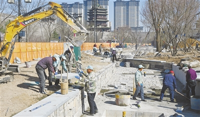 该工程南起大十字街,北抵武定门,全长1100米,前期基础工程已完工。今春复工后,施工单位严格遵循古城保护修复原则,复刻北魏水街盛景,加速推进地上景观、廊亭、绿化及水系配套建设。项目建成后,将串联古城核心文旅节点,重现北方古都“小桥流水”的诗意水韵。 本报记者 张占兵摄