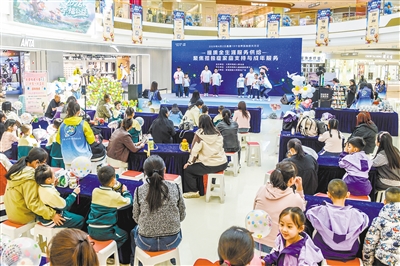 4月2日是第19个世界孤独症关注日。当日上午,市残联、市特殊儿童康复教育中心联合社区幼儿园举办的公益活动在云冈区吾悦广场举行。本次活动以“提质全生涯服务供给,聚焦孤独症家庭支持与成年服务”为主题,呼吁社会各界共同关注孤独症群体,向他们传递温暖与关爱。图为活动现场孤独症儿童和家长一起表演节目。 本报记者 韩堃摄