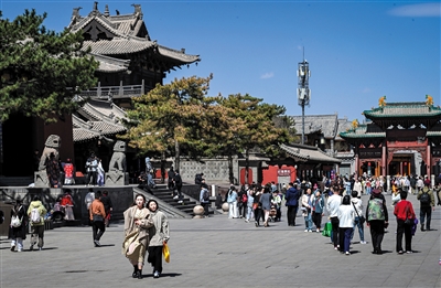 图为游客在华严广场游览。