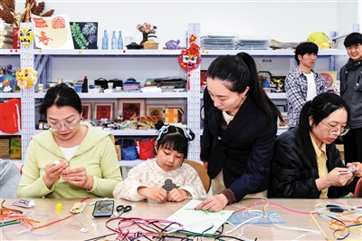 4月4日,市美术馆举办“纸韵寄清思·鸢飞沐春风”清明节系列手作公教活动,旨在传承中华优秀传统文化。活动中,亲子家庭通过制作纸艺,在指尖技艺中感悟清明文化底蕴,邂逅春日美好。图为市美术馆工作人员指导母女制作纸艺。