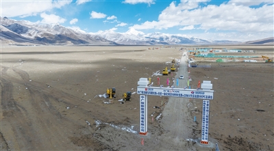 这是中广核西藏当雄乌玛塘50兆瓦光热电站破土动工现场(4月6日摄,无人机照片)。