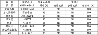 1. 17个采样点常规43项监测结果: 出厂水水质合格率100%;管网水水质合格率100%。