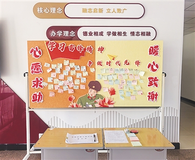 校园各处皆是课堂。活动中,各班级用粉笔在黑板报上勾勒雷锋生平与事迹,一幅幅鲜活的图文,成为教室中无声的精神灯塔;教室里,师生共读雷锋日记,在交流碰撞中加深了对雷锋精神的认同; 校园广播里,“雷锋之声”每日准时开播,雷锋故事、雷锋日记以及学雷锋主题歌曲,让雷锋精神通过电波浸润校园每个角落;“暖心榜”与“感谢墙”则将一句句真挚的感谢、一个个温暖的故事,在校园里广为传扬。