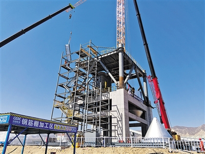 4月1日,记者来到云冈区经济技术开发区山西大同千万吨级煤矸石综合利用项目建设现场,只见高大的悬浮预热器钢结构框架已拔地而起,混凝土搅拌车往来穿梭,工人们正配合汽车吊,将一根根钢构件精准吊装到位。