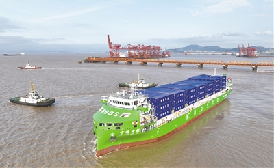 4月15日,全球最大、国内首艘万吨级纯电动智能集装箱海船“宁远电鲲”轮从宁波舟山港北仑港区启航,驶向嘉兴港乍浦港区,标志着该船正式投入商业航线运营。