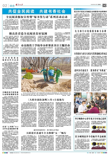 本报讯 (记者 董芳) 4月22日,2026年“培育读书风尚 建设文化大同”全民阅读、版权宣传暨“绿书签行动”启动仪式在大同大学附属小学举行,以多元形式激发市民阅读热情,让版权理念深入人心。