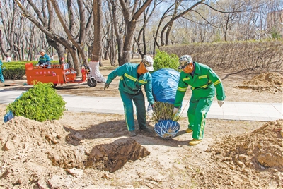 连日来,云冈区平旺公园抢抓时令,集中开展树木修剪与补种补植工作,修复裸露绿地,进一步提升游园景观效果。据了解,此次补种涵盖国槐、水蜡、月季、丁香球、芍药等树种,兼顾四季常绿景观效果、丰富乔灌木层次搭配,同步对园内大型树木、绿篱及枯枝败叶进行集中清理整形,园区绿化面貌焕然一新。 本报记者 于宏摄