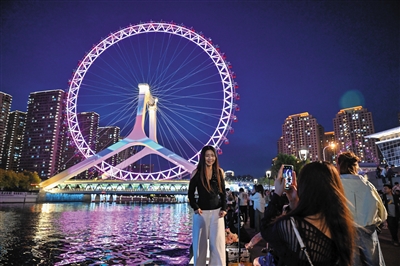 近年来,天津推出了“海河之夜”城市文旅品牌,不断拓展夜游场景、丰富业态供给,有效激活夜间文旅活力。独具魅力的津城夜色,成为中外游客出游打卡的热门选择。