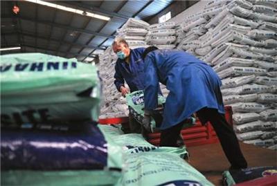 3月4日,工人往陕西蒲城县供销联社的配送专用车上装春耕农资。