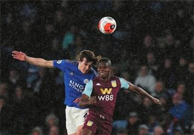 3月9日,莱斯特城队球员瑟云聚(左)与阿斯顿维拉队球员萨马塔争顶。