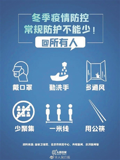 冬季是呼吸道传染病常发、多发季。国家卫健委日前发布冬季疫情预警提醒,当前境外疫情加速蔓延,输入我国的风险逐步加大,预计冬季我国疫情仍将处于零星散发状态,甚至局部地区有可能发生聚集性疫情。此外,其他呼吸道传染病也将进入流行季节,加上春节期间人员流动性加大、聚集性活动增多,都将进一步增加疫情传播的风险,所以——