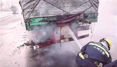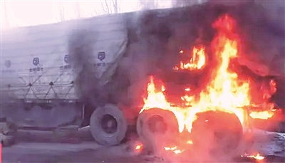 6日7时许,左云县马道头乡路段,一辆拉牛奶的大货车后轮胎及车辆底盘突然起火,司机发现后及时报警。期间,他几次试图灭火,但根本无法靠近车辆。