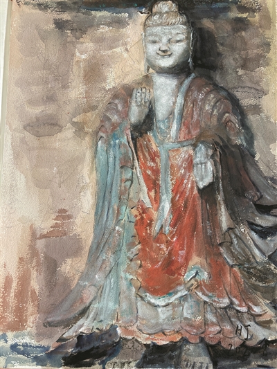 水彩作品《云冈石窟佛像》 (照片由采访对象提供)
