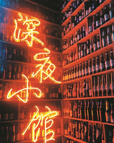在大同,冬日的夜晚格外地冷。有人说,北方的冬天没有喧闹的夜,其实这是因为北方的夜淳朴又豪爽。所谓淳朴,是只要几位好友,一间小馆,二三小菜,一壶好酒即可。都说酒香不怕巷子深,小酒馆位置不太好找,可是一进门就能让你感受到浓浓的氛围。幽暗的灯光下,各式各样的酒瓶码满墙面,成为许多人喜欢的拍照地。伴随着轻音乐进入店内,映入眼帘的是几张小桌子,酒柜内摆满了各种品牌的啤酒和洋酒。菜单比较简单,都是店家拿手的小菜,很适合下酒。在这里喝的是氛围,喝的是情调。