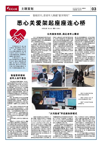 为帮助老年人融入日新月异的数字时代,保障他们出行、就医、购物等生活需求,我市在多个领域进行探索尝试,通过方式方法的变通、相关措施的辅助,以悉心关爱架起座座连心桥。