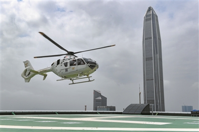 3月18日,直升机抵达深圳市中心的大中华直升机场。