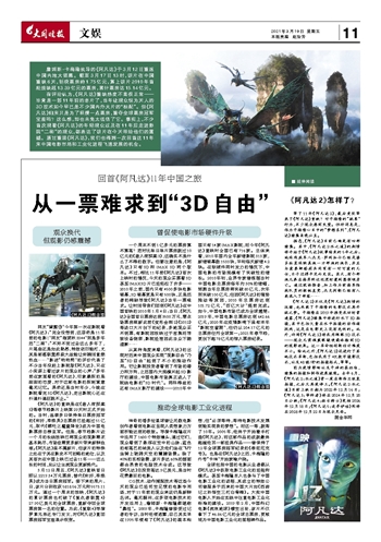 网友“黛戴岱”今年第一次在影院看《阿凡达》:“完全没想到,这居然是11年前的电影!”网友“海棠秋3344”则是多年后“二刷”:“不知不觉过去这么多年了,片尾曲还是如此熟悉,特效依旧能打,尤其是部落联盟那段大战能让你瞬间重燃热血……”影迷“哟哟熙”的评价代表了不少当年没赶上影院版《阿凡达》、只在小荧屏上看过该片的观众的心声:“多年前在家里看的《阿凡达》,印象最深的是甜甜的恋爱,对于这部电影的深刻寓意毫无记忆。果然还是当时年少,今晚在影院看完3D《阿凡达》,走出影院心还在扑通扑通狂跳不止。”