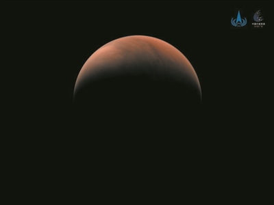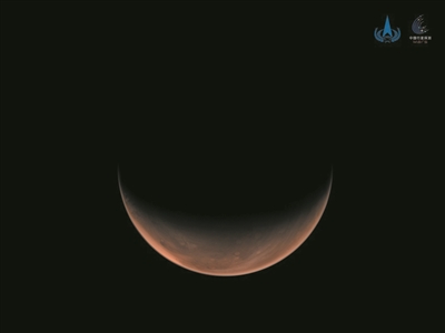 新华社3月26日电 3月26日,国家航天局发布两幅由我国首次火星探测任务“天问一号”探测器拍摄的南、北半球火星侧身影像。图像中,火星呈“月牙”状,表面纹理清晰。
