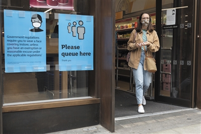 ▲ 7月12日,一名戴口罩的女子走出英国伦敦一家超市。