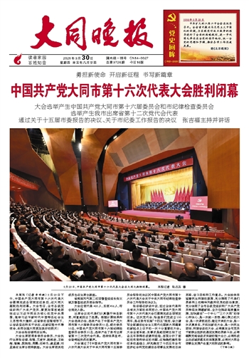 本报讯 (记者 李明璇) 9月29日下午,中国共产党大同市第十六次代表大会圆满完成各项预定任务后,在大同大剧院胜利闭幕。大会号召,全市各级党组织和广大共产党员,要更加紧密地团结在以习近平同志为核心的党中央周围,高举习近平新时代中国特色社会主义思想伟大旗帜,在省委的坚强领导下,以奋进姿态和实干状态,在新征程中不辱使命,共同创造大同更加美好的明天!