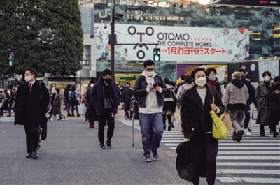 1月21日,人们戴口罩走在日本东京涩谷街头。(资料图)