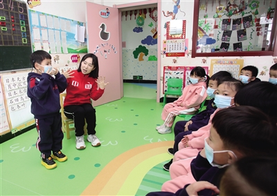 3日,市特殊儿童康复教育中心开展儿童听力疾病相关知识讲座,旨在提高儿童爱耳护耳意识,推动防聋治聋工作的开展。 图为老师给听障儿童做康复训练。 本报记者 韩堃 摄