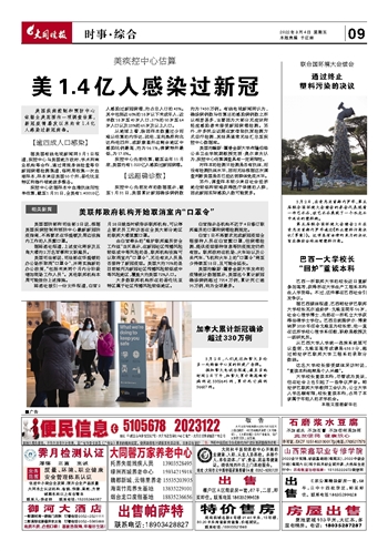 美国疾病控制和预防中心依据全美范围内一项调查估算,新冠疫情暴发以来约有1.4亿人感染过新冠病毒。