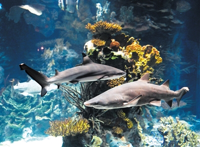 科威特科学中心5日举行新闻发布会,宣布成功繁殖了两条沙虎鲨幼鲨。沙虎鲨目前在世界自然保护联盟濒危物种红色名录上被列为“极危”物种。