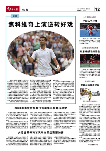 焦科维奇半决赛将对阵英国本土选手诺里。这位已创造大满贯个人最好成绩的9号种子当日两度落后又两度追平,最终决胜盘7∶5胜出,淘汰了比利时人戈芬。