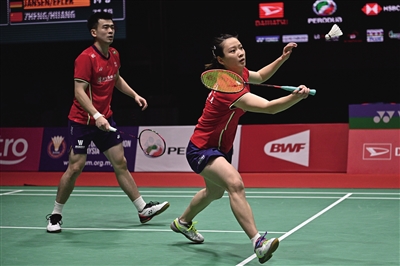 7月6日,在吉隆坡举行的2022年马来西亚羽毛球大师赛混双首轮比赛中,中国组合郑思维/黄雅琼以2∶0战胜德国组合琼斯·拉夫利·詹森/琳达·埃弗勒,晋级下一轮。图为郑思维/黄雅琼(右)在比赛中。