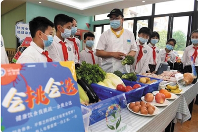 2022年5月19日,合肥市翡翠学校厨师向学生们讲解食物营养搭配知识。(资料图)
