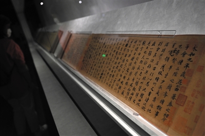 ▲这是米芾行书兰亭序跋赞卷(8月29日摄)。