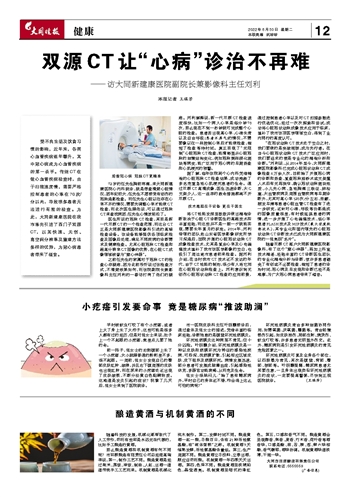 之前任先生的家属对于冠脉CT的检查心存疑虑,因为此前没听说过该检查方式,不清楚效果如何,而该院副院长兼影像科主任刘利的一番话打消了他们的疑虑。刘利解释说,新一代双源CT检查速度很快,比如一个病人心率是每分钟70次,那么现在不到一秒钟就可完成整个心脏的检查。患者若出现高心率、心律失常以及自由呼吸(患者不屏气)的情况,不需要像以往一样控制心率后才能做检查,缩短了检查等待时间。真正实现了“无限制”心脏冠脉CT检查,能清晰显示心脏冠脉的细微结构变化,例如冠脉粥样硬化斑块等病变,能广泛用于冠心病的早期筛查和心肌梗死的预警。