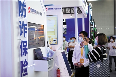 9月5日,参展人员在2022年国家网络安全宣传周网络安全博览会上介绍防诈保险。