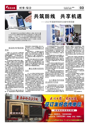 首次组织汽车企业在网络安全博览会上亮相、首次设立量子安全分论坛、授牌首批国家网络安全教育技术产业融合发展试验区……9月5日至11日,2022年国家网络安全宣传周在全国范围内统一举办。今年活动期间展示了哪些先进技术与前沿应用,如何进一步提高全社会网络安全意识?记者深入活动现场,亲身感受共筑网络安全防线的强大合力。