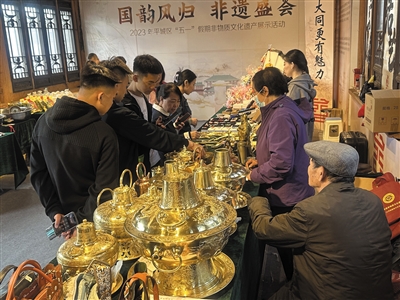 据了解,本次展览活动是2023平城区“五一”假期群众文化活动之一,时间为4月29日至5月3日,为期5天,以非遗传统技艺展示为重点,以“潮生活 晋是宝”为主题,通过购非遗产品、品大同美食,让市民、游客深入了解非遗,感受中华传统文化与现代生活的碰撞与交融。