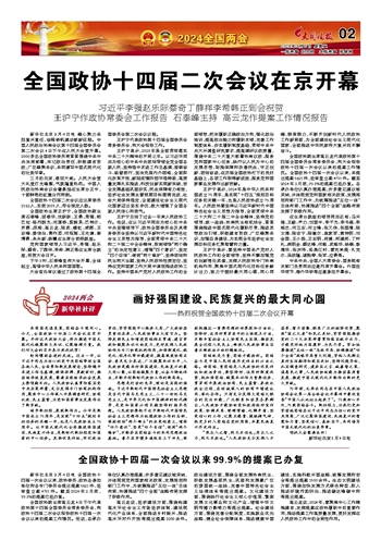 大会首先审议通过了政协第十四届全国委员会第二次会议议程。