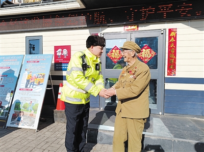 3月1日下午3时许,记者见到民警姚斌后,他说,“在岗一分钟,尽责60秒”,这是每一名交通警察始终铭记在心的职责。他只是做了一件日常工作中最普通的事情,让他欣慰的是,通过那位网友的视频,他才知道自己帮到的老兵是一位抗美援朝英雄。这几天,他在网上也搜索到关于这位老人的相关信息,心生敬意,觉得能够帮到他是自己的荣幸。同时他也表示,在今后的工作中将站好每一班岗,做好日常工作中的每一件小事,让群众切身感受到民警就在身边,安全就在身边,温暖就在身边。
