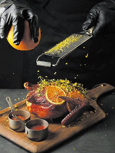 既然是融合餐厅,店内的菜品当然也是非常丰富,美餐、法餐、西班牙餐、意大利餐中具有代表性的菜品几乎都有。落日橙香烤鸡是该店的招牌菜,有番茄和辣椒两种酱汁。烤鸡肉汁饱满,还有着淡淡的橙子香味,非常好吃。意大利肉酱面,不仅肉酱料足,味道也很浓郁,每一口都裹着满满的酱汁。牛油果三文鱼塔塔是女生的最爱,三文鱼的肉质细嫩,伴着牛油果的香味,口感丝滑。法式蒜香牛蛙,蒜香味浓郁,加上牛蛙细嫩的肉感,让你吃起来只能感叹西餐的量太少了。