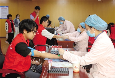 本报讯 (记者 丁亚琴) 14日,大同市中心血站与山西大同大学红十字会联合开展的无偿献血进校园活动举行,众多大学生踊跃参与,用实际行动展现了当代大学生的精神风貌。