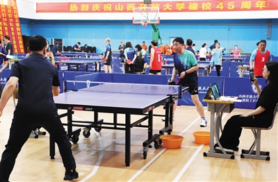 本报讯 (记者 孙露) 为进一步增强体系办学凝聚力,提升开放大学影响力,展示教职工积极向上、快乐健康的精神风貌,昨日,首届山西开放大学办学体系教职工乒乓球比赛在同开幕,全省17支代表队百余名教职工,在平城区少年体校展开为期两天的角逐。