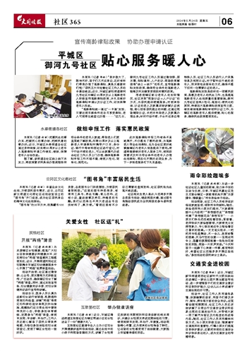 本报讯 (记者 郑林) “我岁数大了,眼神不好,孩子们又不在身边,还好有你们帮我办理了高龄津贴,真是太感谢你们啦!”居民王大爷拉着社区工作人员的手激动地说。近日,平城区新旺街道御河九号社区为辖区80周岁及以上高龄老年人积极宣传高龄津贴政策,并扎实做好高龄津贴申请以及认证工作,切实保障老年人权益。