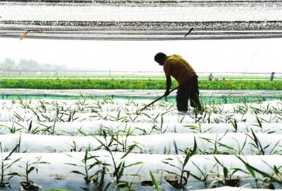 各地农民抢抓农时进行夏收、夏种、夏管工作。这是21日山东青岛农民在田间锄草。