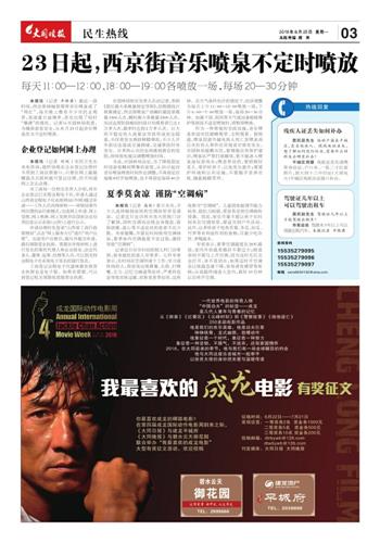 23日起,西京街音乐喷泉不定时喷放
