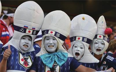 ▲24日,日本球迷在赛前造势。