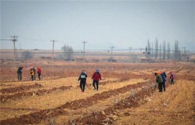 图为西阁老山村村民3月31日栽种果树。