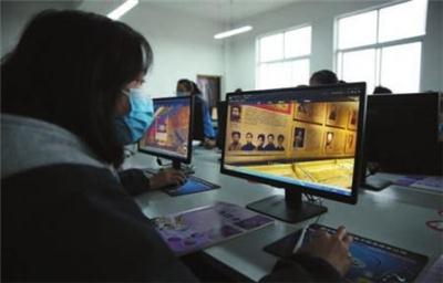 4月2日,在贵州省黔东南苗族侗族自治州丹寨县第二中学,学生们通过浏览网络展馆学习革命英烈的事迹。